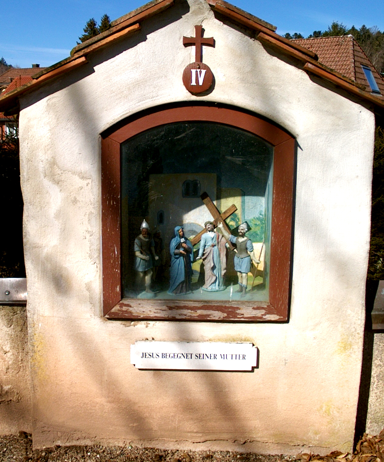 Im Allgemeinen führen österliche Ausflüge nicht auf den Friedhof, auch wenn die Botschaft von Kreuz und Auferstehung Jesu Christi den Sinn für Ostern ausmacht. Doch ein ganz besonderer Kreuzweg in Richtung Freiburg bietet sich mit besonderem Ziel für die Ostertage an: der Kreuzweg auf dem Friedhof in St. Peter. Dort schmücken 90 Vollplastiken des Villinger Hafnermeisters Dominicus Ummenhofer (1805 bis 1876) in 14 Bildstöcken den Gottesacker: Von der ersten Station ‚Jesus wird zum Tod verurteilt‘ bis zu ‚Jesus wird ins Grab‘ gelegt.