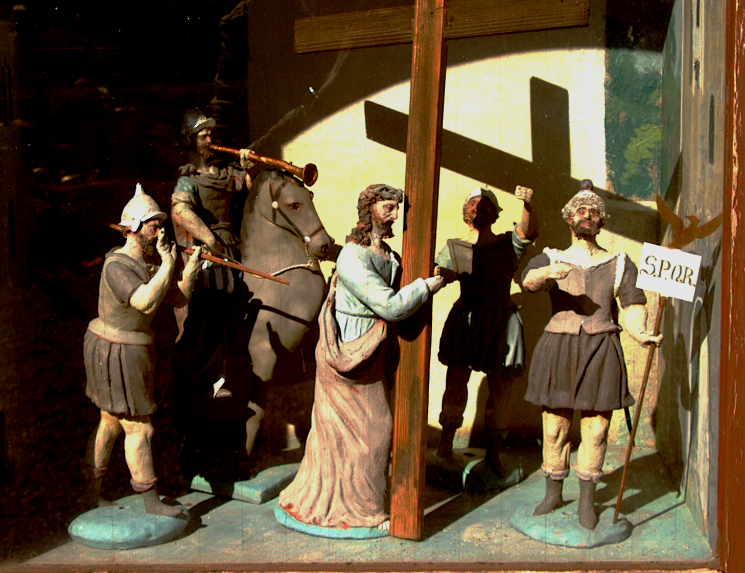 Die hölzernen Schaukästen wurden neu gestrichen, vor dekorativem Hintergrund wurden die 90 Passionsfiguren wieder aufgestellt.