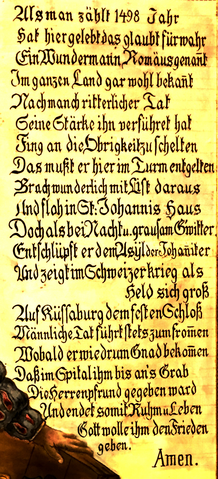 das Bildnis des legendären Romäus samt dessen Leben, beschrieben und gemalt in der Manier un dim Schriftbild alter Prosa.