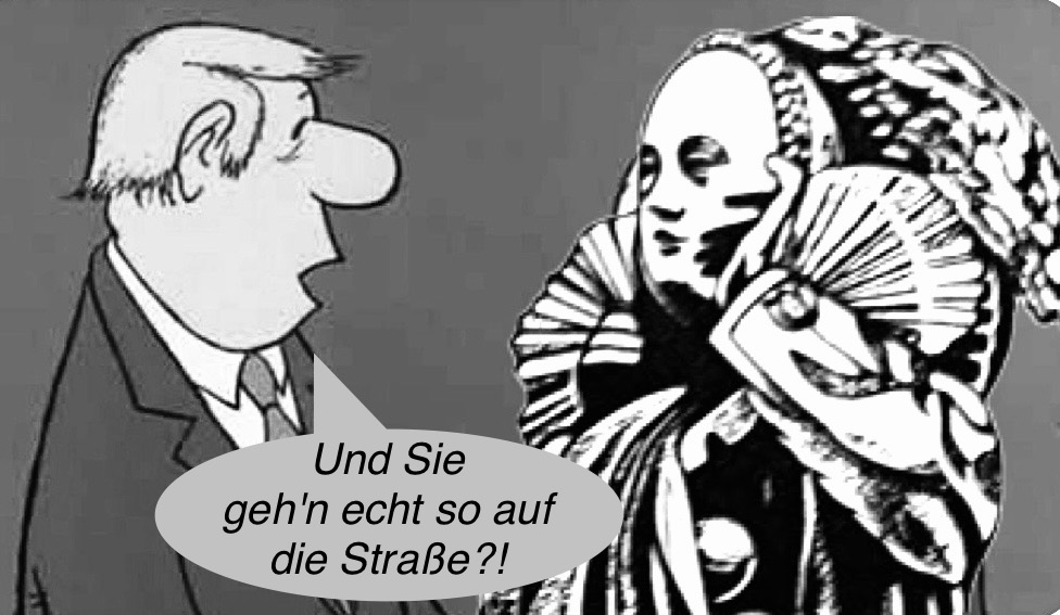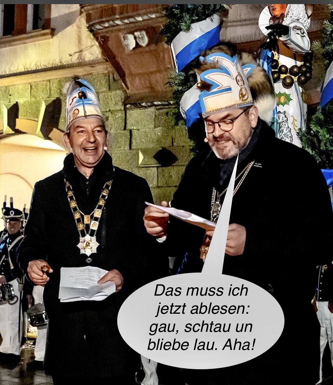 Darf nun aber doch auch die Frage gestellt werden, ob man auch ohne Scheme den Narren-Fürsten und Vasallen strählen darf, wie jüngst durch Thomas Moser und Klaus-Peter Karger zum Mitglieder-Boom geschehen zu den ständig steigenden Zuwachszahlen der Narrozunft. Vielleicht gar bebildert – mit oder besser ohne KI?