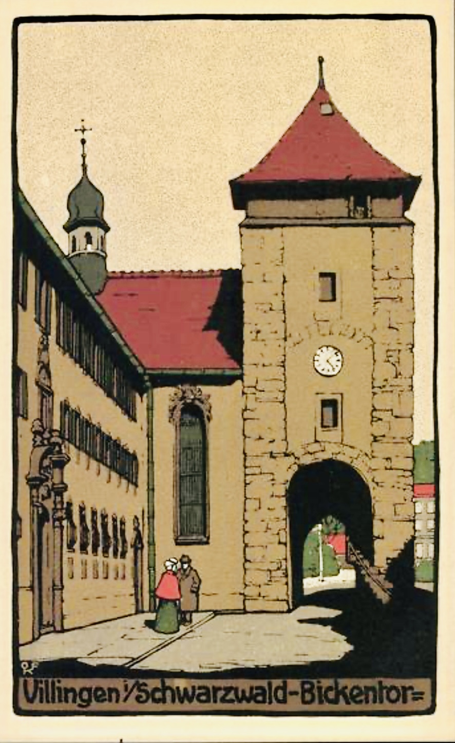 Die Blütezeit der Steindruck-Ansichtskarte lag um 1900 mit klassischen „Gruß aus Villingen“-Karten als mehrfarbige Chromolithographie, in kräftigen Farben, mit Ornamentrahmen, Fahnen und Blumen. Auch hier häufig abgebildet das Münster Unserer Lieben Frau, das Bickentor das Obere Tor der Marktplatz oder der Bahnhof